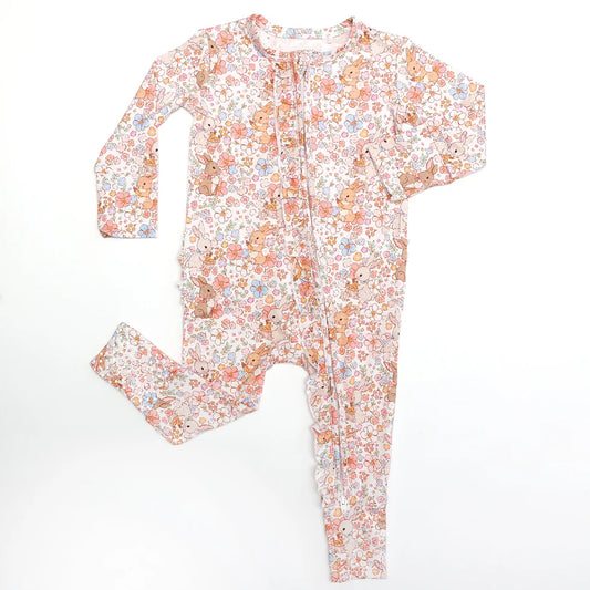 Bamboo Ruffle Zipper Romper (IVY)- BLOSSOM BUNNIES