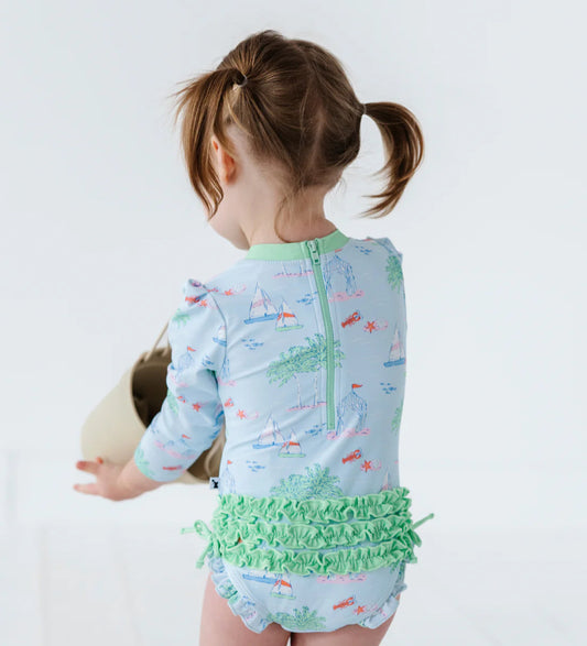 Long Sleeve Ruffle Swimsuit- DREAMS FOR SAIL