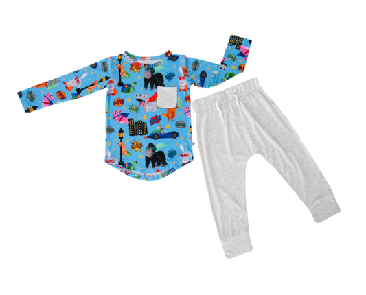 Sold out2pc Bamboo Pajama Set- Red Bulldog