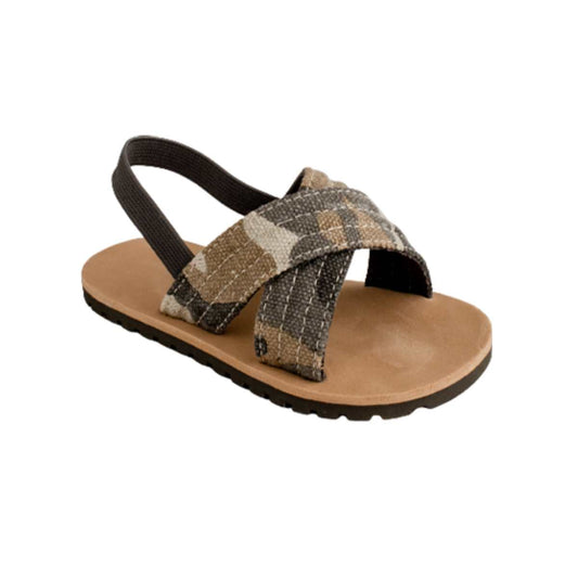 JAMES TODDLER BROWN CANVAS WITH CRISS-CROSS CAMO STRAPS
