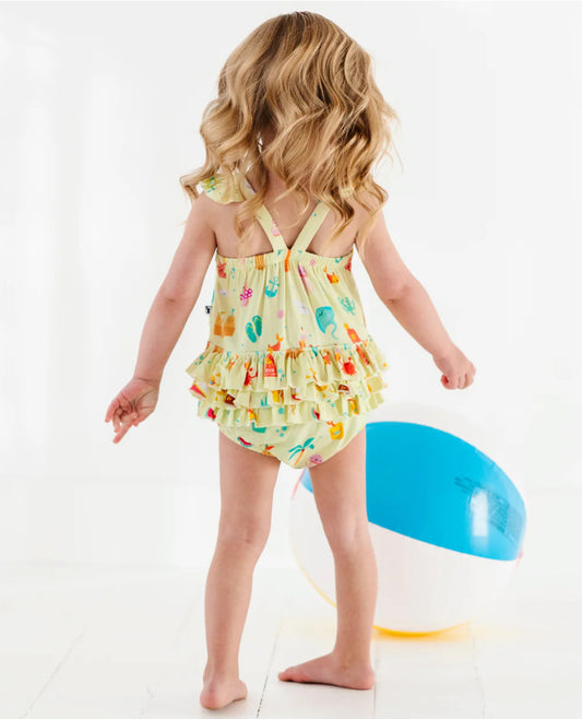 Alligator Friends Pink Print Sleeveless Girl Toddler Bubble