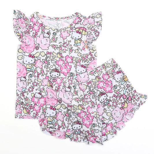 Bamboo Flutter Sleeve & Shorts Lounge Set (OLIVIA)- FLOWER GARDEN HELLO KITTY HK