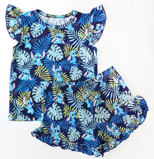 Bamboo Flutter Sleeve & Shorts Lounge Set (OLIVIA)- FLUFFY FRIENDS OHANA