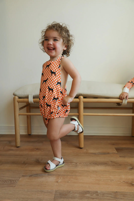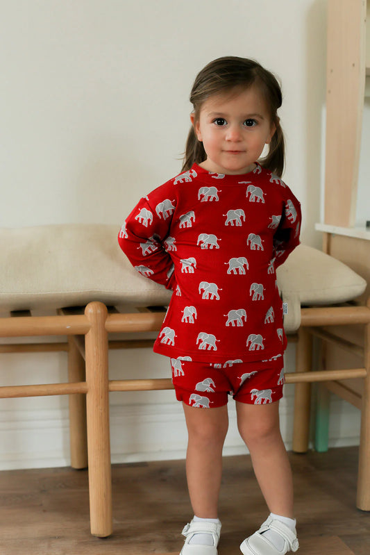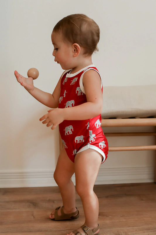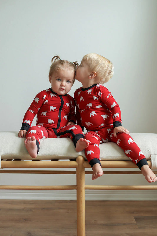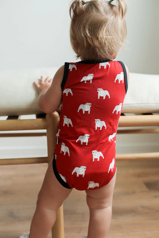 Bamboo Henley Onesie with Snaps- Red Bulldog