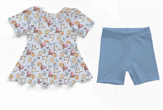 Bamboo Short Sleeve Peplum Set- PARK FUN PRINCESS SISTERS ELSA ANNA