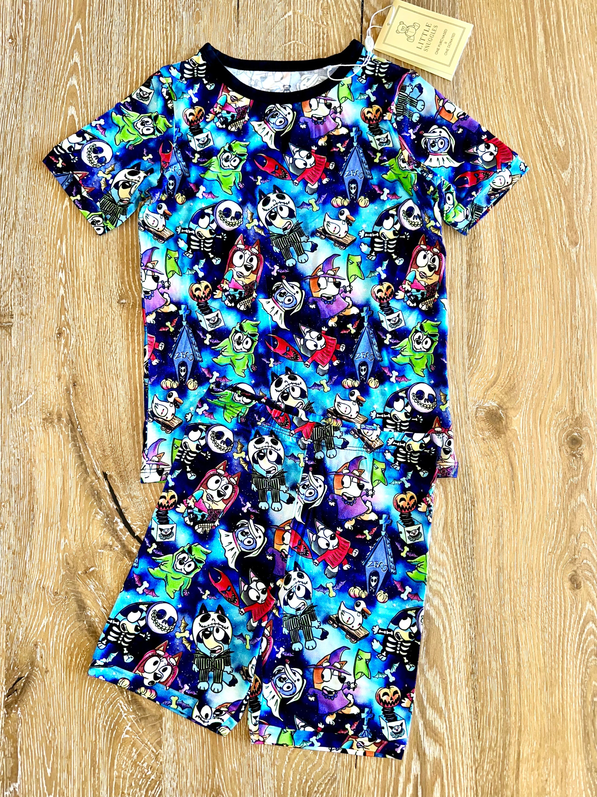 Bamboo (Bentley) Short Sleeve Shorts Lounge Set- CREEPIN' IT BLUE BLUEY
