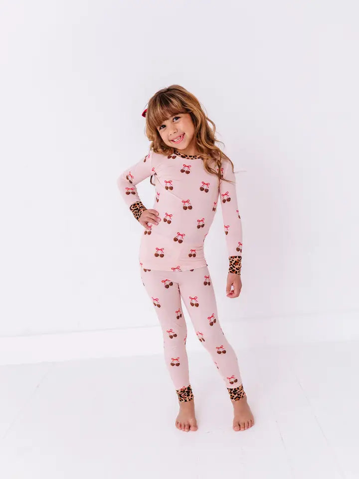Leopard Love Cherry Valentine Kids Pajamas